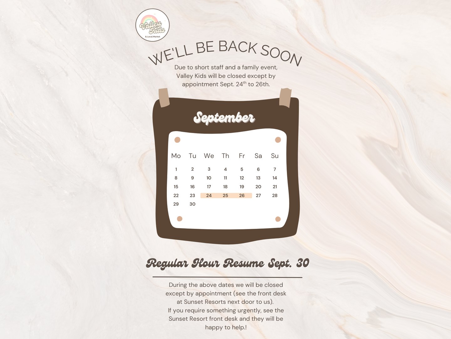 Temporary Hours - September 24-28